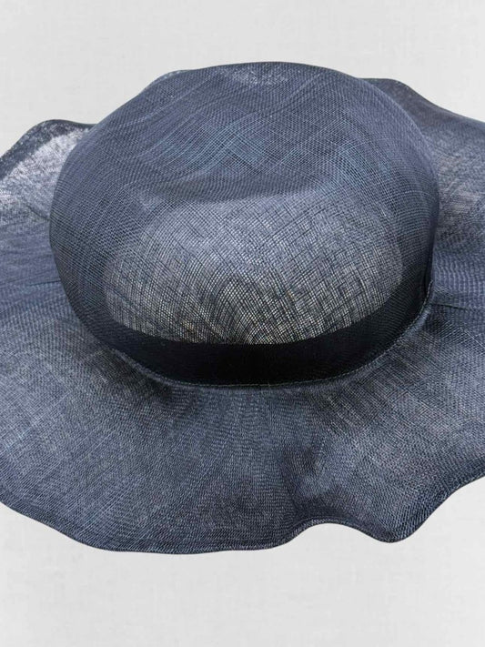 REINHARD PLANK Navy Blue Wide-Brimmed Mesh Straw Hat