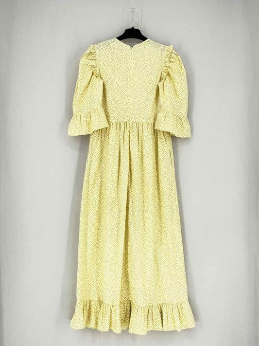 BATSHEVA Yellow Printed Size Small Midi Dress