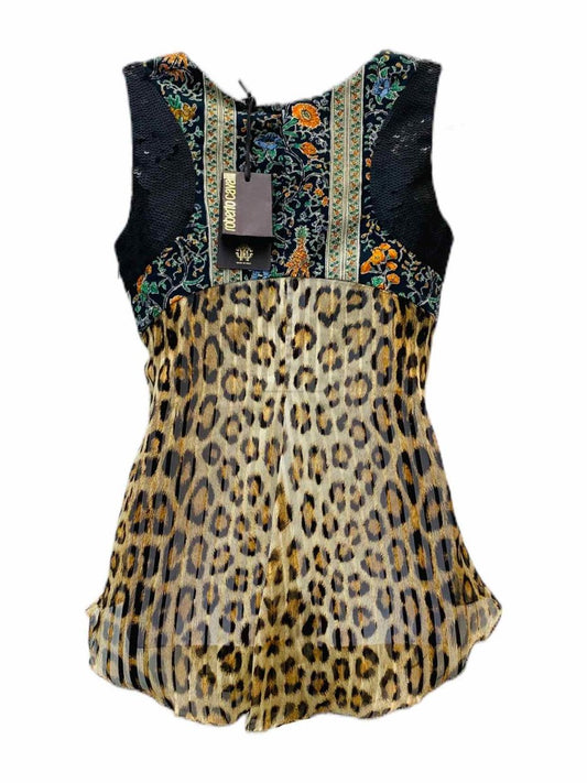 ROBERTO CAVALLI Black & Green Floral Size US 4 Top