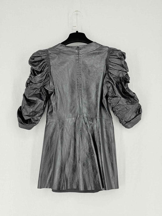 CELINE Leather Black Ruched Size XXSmall Short Dress