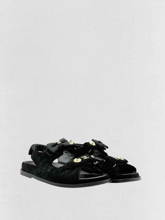 CHANEL Velvet Dad Black Quilted Size EU 42 Sandals