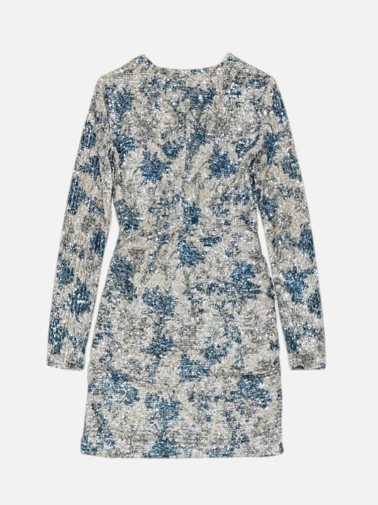 MAJE Ruched Off-white & Blue Size US 4 Short Dress