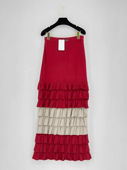 IZAAK AZANEI Red & Beige Frilled Size Small Long Skirt