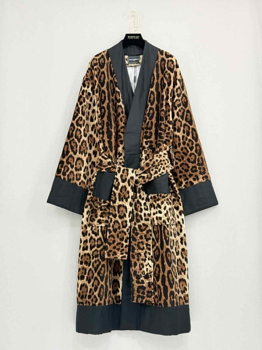 DOLCE & GABBANA Black & Beige Leopard Size US 6 Robe