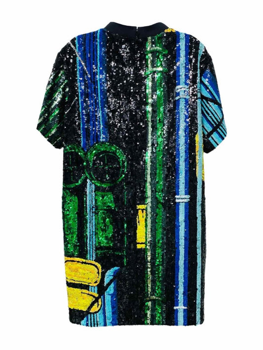 LOUIS VUITTON Black Multicolor Size US 6 Short Dress