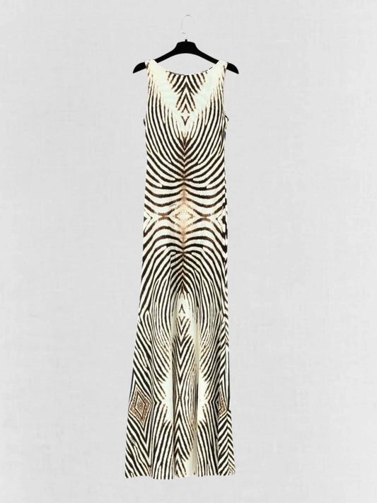 ROBERTO CAVALLI Beige & Brown Size US 8 Long Dress