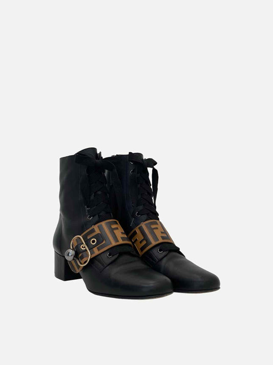 FENDI Lace Up Black FF Motif Size EU 39 Ankle Boots