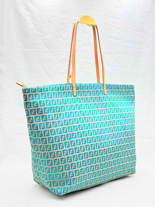 FENDI Roll Blue & White Zucchino Tote Bag