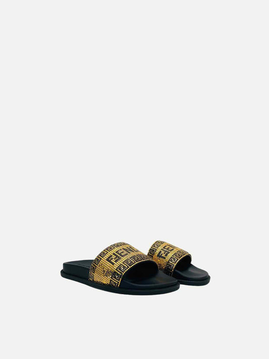 FENDI Fendace Gold & Black Size EU 39 Slides