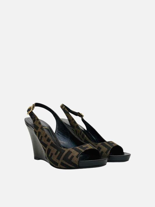 FENDI Slingback Black & Brown Size EU 39 Wedges