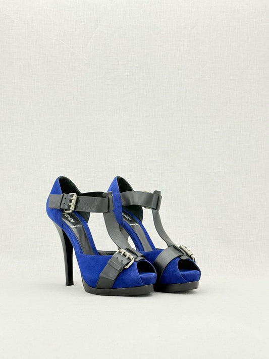 FENDI Blue & Black Size EU 39 Heeled Sandals