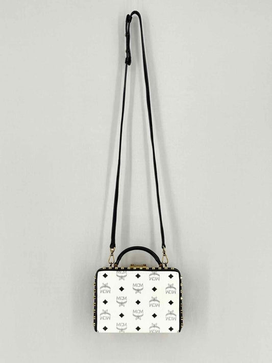 MCM Berline Visetos Box White & Black Crossbody