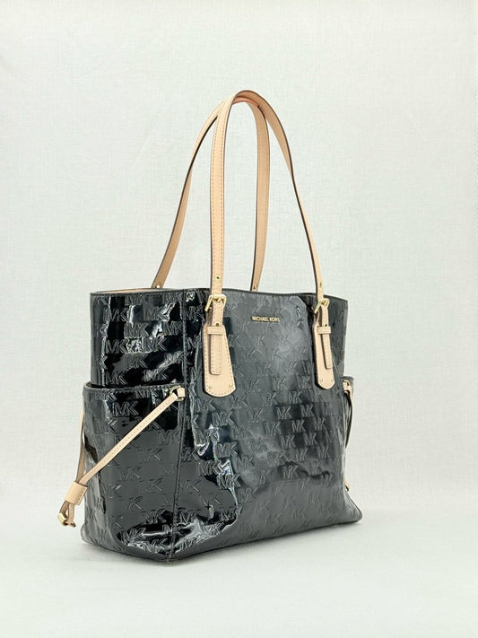 MICHAEL KORS Voyager Black Logo Embossed Tote Bag