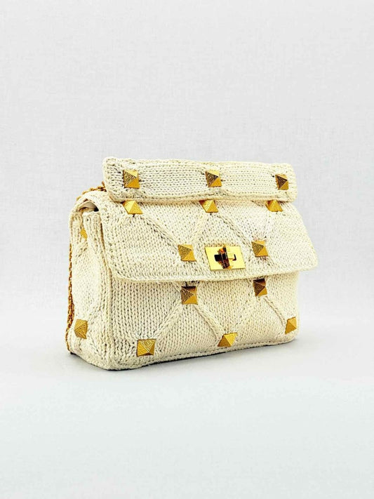 VALENTINO Roman Stud Knit Off-white Top Handle