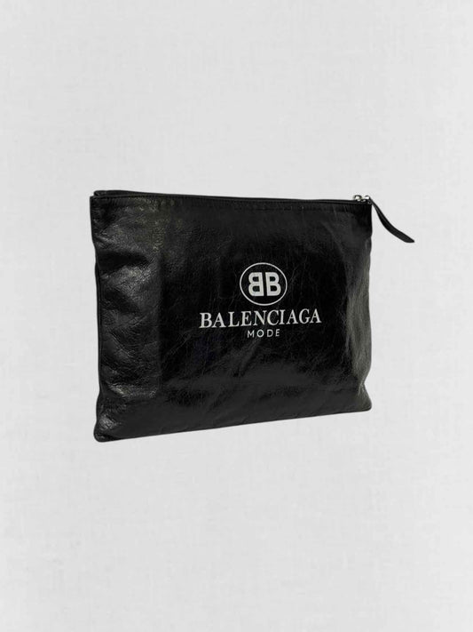 BALENCIAGA Black Logo Print Clutch
