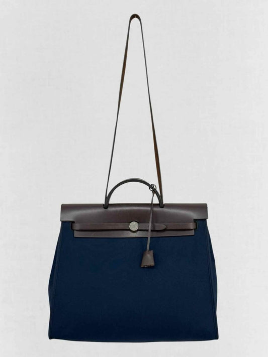 HERMES Herbag Brown & Navy Blue Top Handle