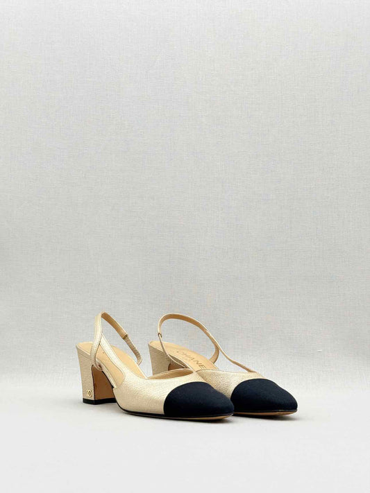 CHANEL Metallic Gold & Black Size EU 35.5 Slingbacks