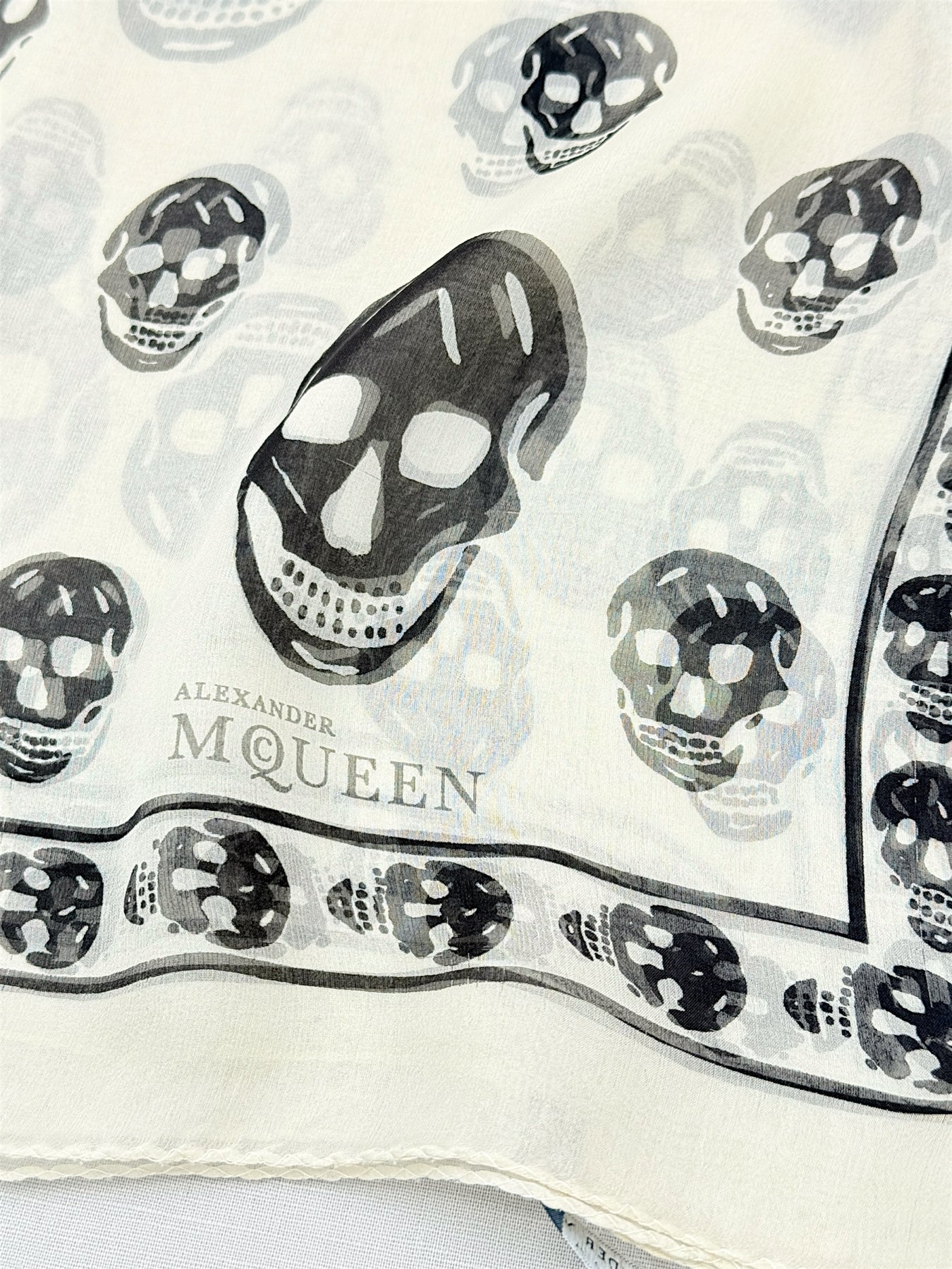 This item (ALEXANDER MCQUEEN Cream & Black Skull Print Scarf) has been verified as an authentic ALEXANDER McQUEEN item or 100% of your money back.