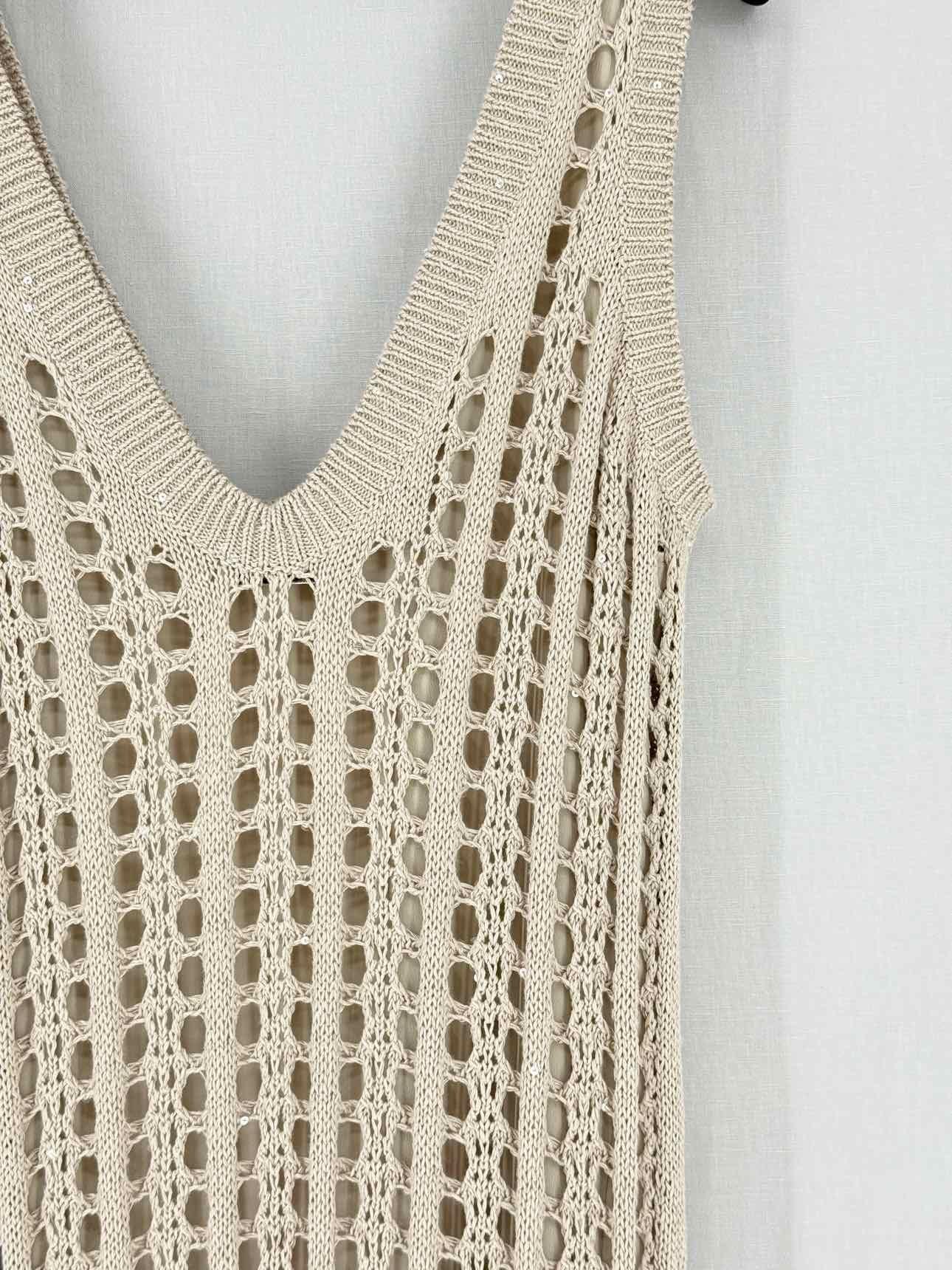 BRUNELLO CUCINELLI Beige Eyelet Size Medium Midi Dress