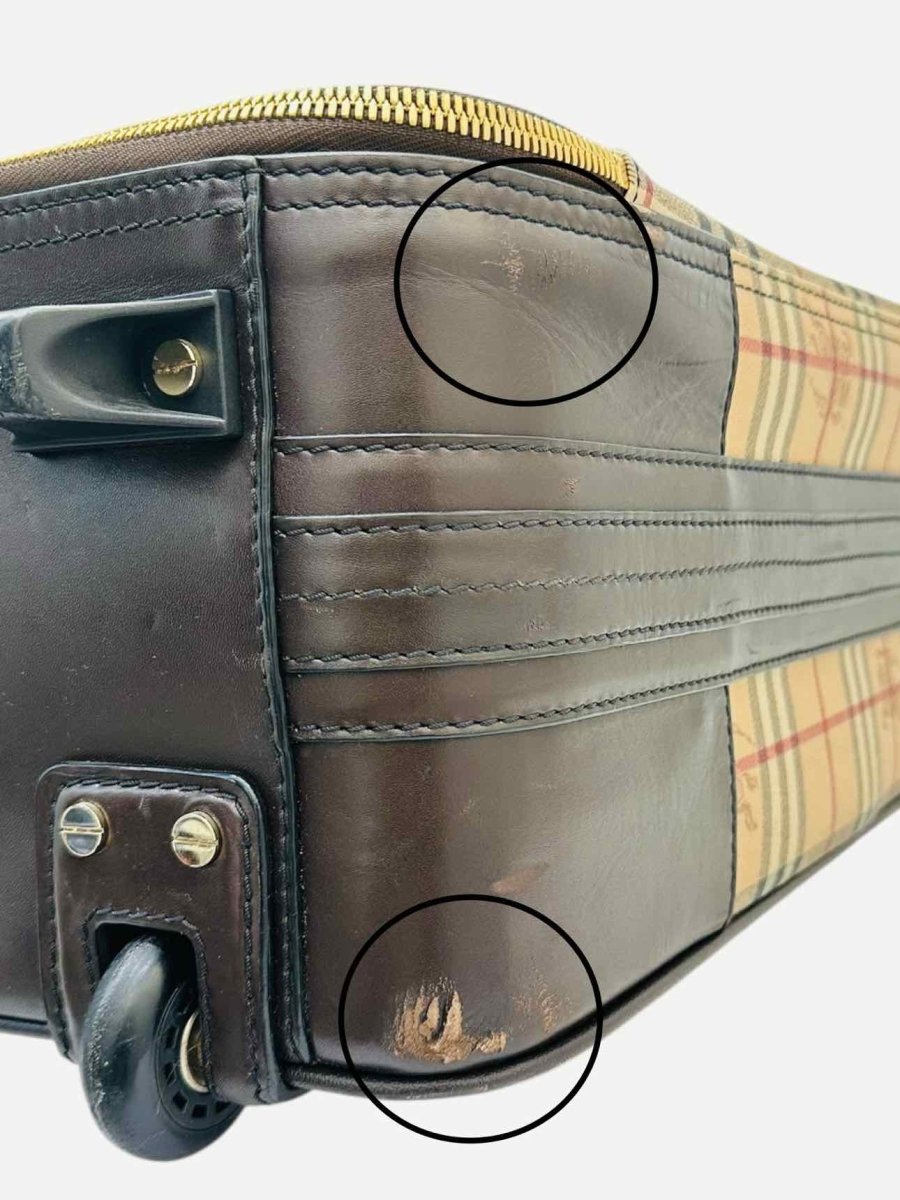 This item (BURBERRY Haymarket Beige Multicolor Rolling Luggage) has been verified as an authentic BURBERRY item or 100% of your money back.
