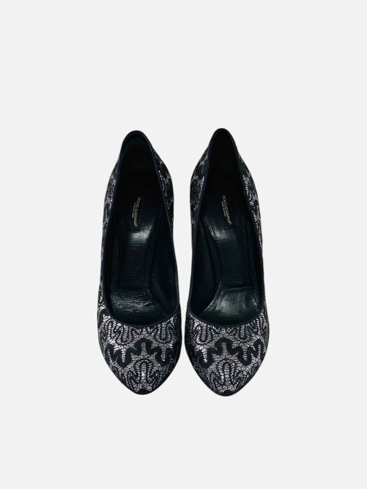 DOLCE & GABBANA Lace Silver & Black Size EU 40 Pumps