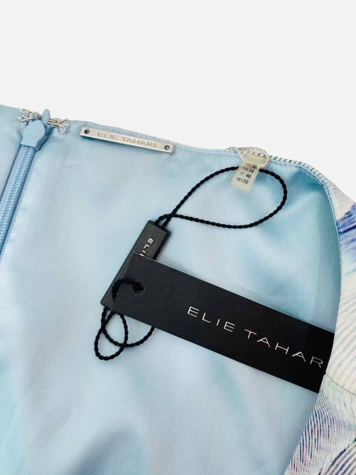 ELIE TAHARI Blue Printed Size US 10 Knee Length Dress