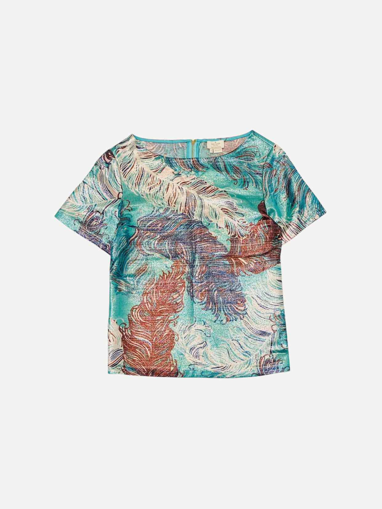 KATE SPADE Green Multicolor Jacquard Size Small Top