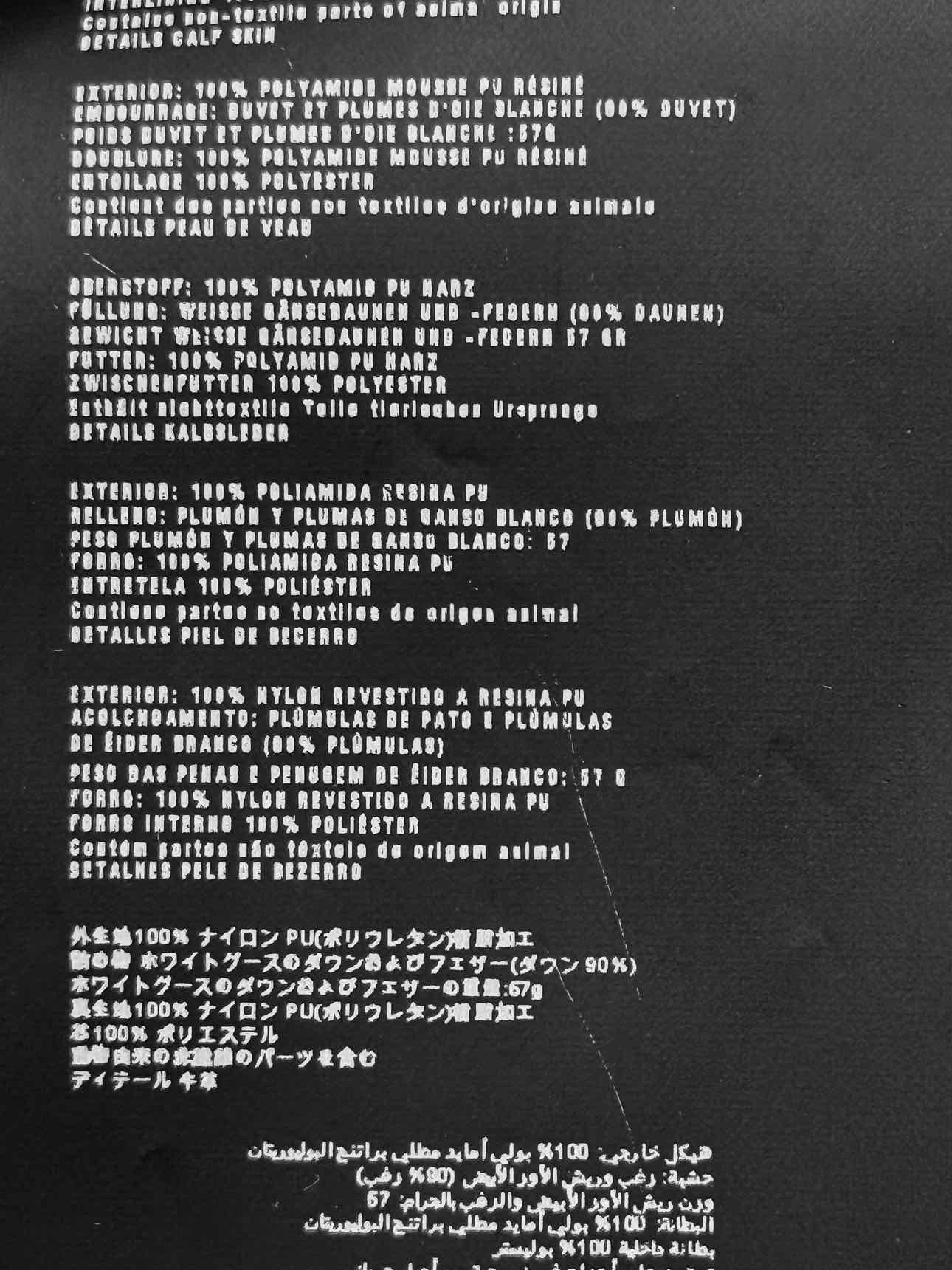 - Insulation Material = Down