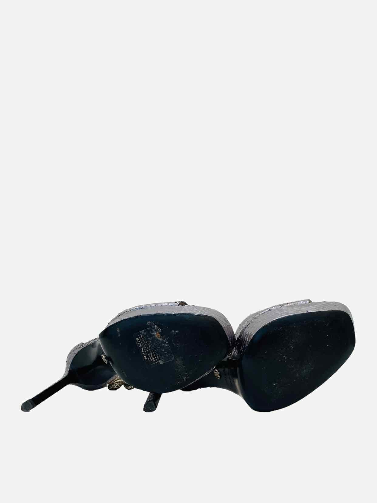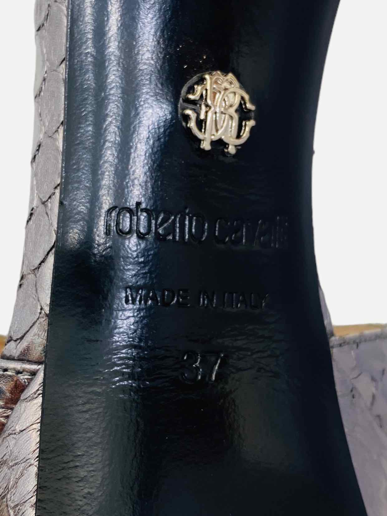 This item (ROBERTO CAVALLI Metallic Grey Size EU 37 Heeled Sandals) has been verified as an authentic ROBERTO CAVALLI item or 100% of your money back.